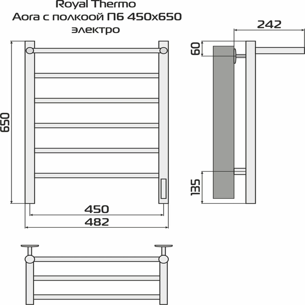 Полотенцесушитель Royal Thermo Аора П6 c полкой 450х650 электро (new встроен. диммер)