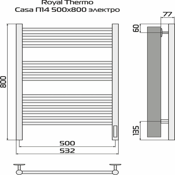 Полотенцесушитель Royal Thermo Casa П14 500х800 электро (встроен. диммер) стальной