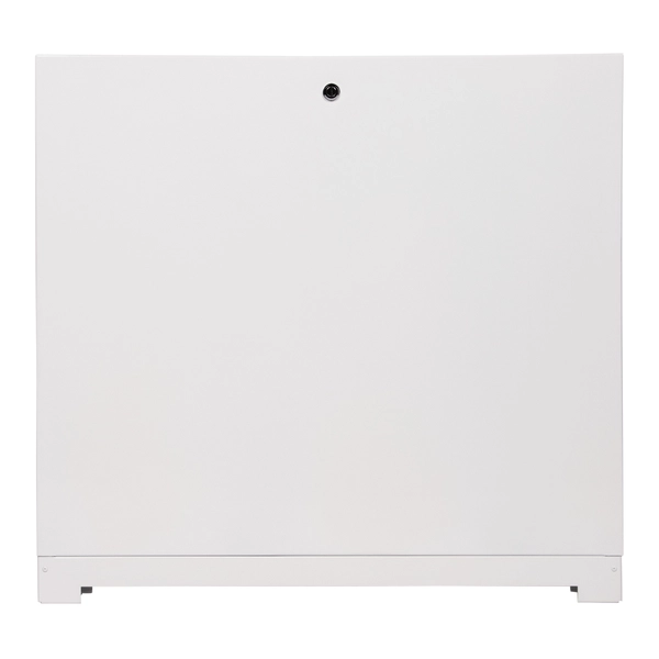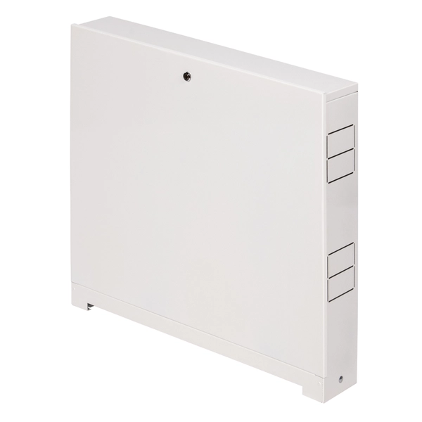 Шкаф изготовлен из цельного стального листа. Технология изготовления без применения сварки. Применяется для монтажа в системах отопления и водоснабжения. Шкаф выполнен из стали, окрашен порошковой краской RAL 9016 с предварительным нанесением фосфатной пленки для придания антикоррозионных свойств изделию. В боковых стенках корпуса шкафа выполнена перфорация, сегменты которой удаляются в любом удобном месте для подсоединения трубопроводов.