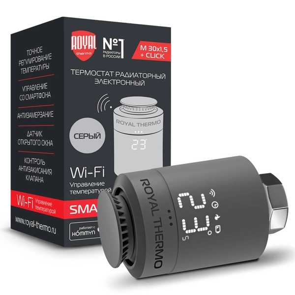 Вы задаете желаемую температуру в помещении с помощью экрана термостата или приложения Hommyn. Термостат регулирует теплоотдачу радиатора, управляя расходом теплоносителя, проходящего через радиатор. Встроенный цифровой датчик измеряет температуру в помещении и, в зависимости от её значения, открывает или закрывает клапан. Движение штока осуществляется с помощью электронного привода, встроенного в термостат. Благодаря этому температура в комнате повышается или понижается до заданного уровня и поддерживается на постоянном уровне. Устройство может работать как в удаленном режиме с управлением через приложение, так и автономно.